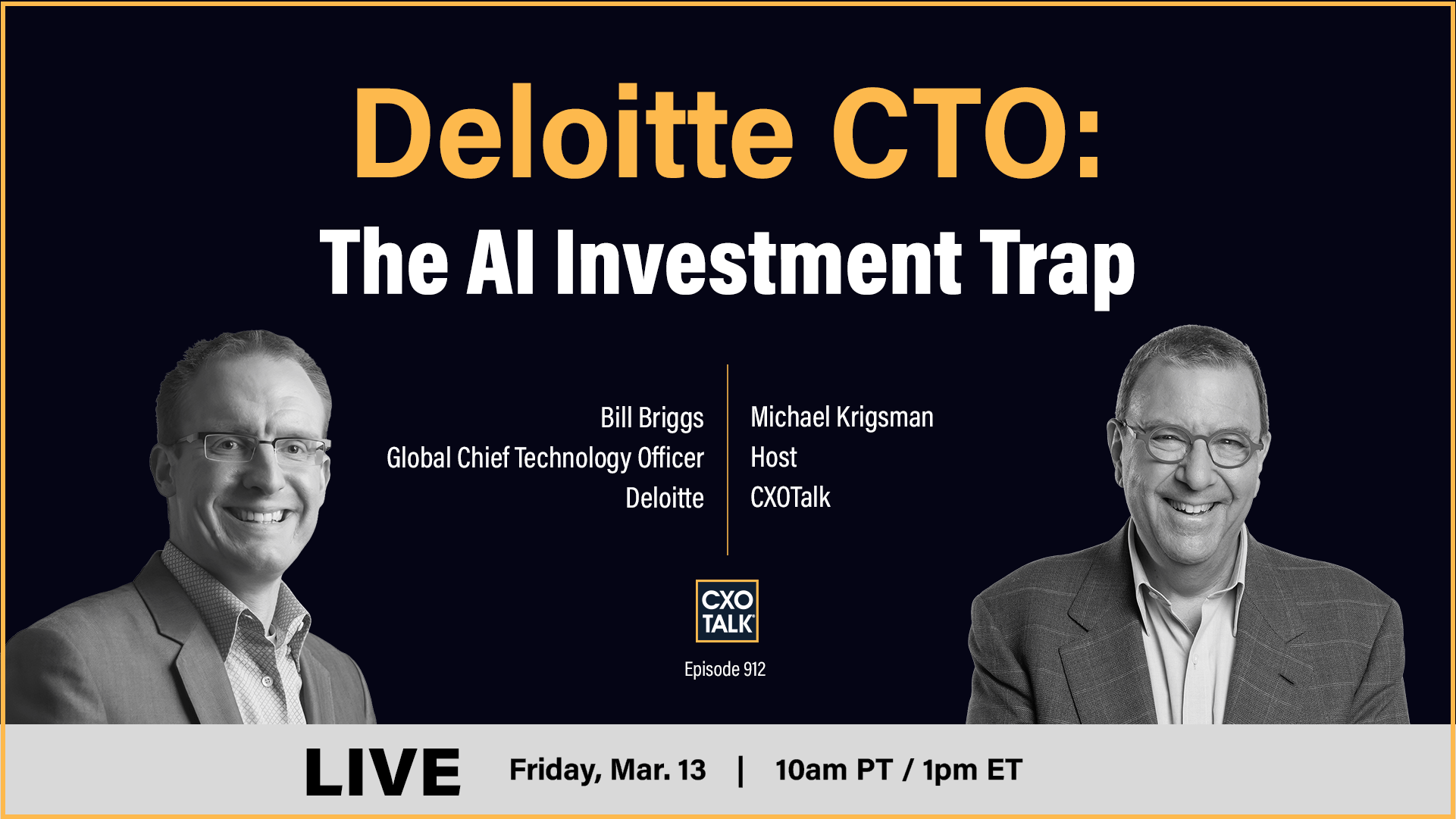 In CXOTalk 912, Deloitte's CTO Bill Briggs explains why 93% of enterprise AI budgets go to technology, while only 7% goes to the people and organizational changes needed to make it work. In this CIO Advisory episode, Briggs confronts the questions facing enterprise leaders investing in AI at scale.